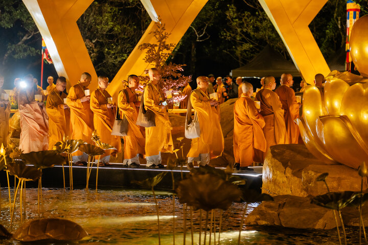 Trong khuôn khổ buổi lễ, nhiều nghi thức trang trọng như niệm Phật cầu gia hộ, sái tịnh khai quang an vị, tụng kinh chúc phúc… đã được thực hiện cùng với lễ dâng hoa đăng thiêng liêng nhằm lan toả năng lượng thiện lành và hồi hướng cho thế giới hòa bình, chúng sinh an lạc, làm nên khoảnh khắc thiêng liêng trên đỉnh núi thiêng huyền thoại.